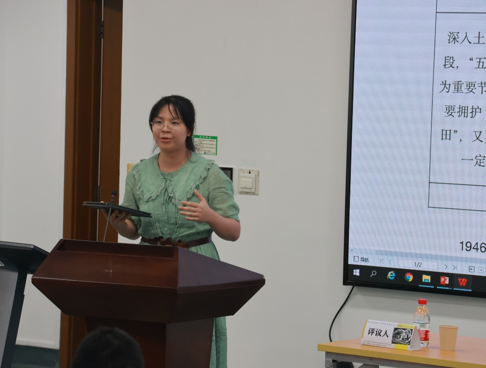 王文慧同学的研究借助听觉文化这一中介,挖掘延安时期的的小说从“读与写”向“说与听”的模式转变,以《刘巧团圆》《小二黑结婚》为例,阐释付之于听觉实践的文艺形式与婚姻法之间的互动,民众与文艺创作者之间的互动。曾瑜同学的汇报以太行区根据地土改政策的不断下行、在实施中遭遇的复杂环境和矛盾这一历史情境为切入点,指出赵树理的《地板》《刘二和与王继圣》从文学角度对现实困境提供了独特的理解,从中反映出赵树理对于乡土情理“走出家庭”之后的困惑与徘徊。赵振杰同学的研究以文学社会学方法进入孙犁评价史,抓住“小资”这一关键问题,通过批判孙犁“小资情调”与“萧也牧事件”的并置,探讨共和国初期文学场域内不同话语权的角力,试图揭示“当代文学”建构过程中的复杂性及其背后蕴藏的文学史张力。张晋业同学以周扬提出的“建设中国自己的马克思主义文艺理论”为起点,围绕1960年代文艺学统编教科书《文学的基本原理》的编写展开讨论,指出这一教材的编写,代表着一种“在中国发现世界”的文化—政治实践思路,有助于重新思考1950—1970年代中国与文学中的几个关键范畴。林洁雨同学以后结构主义理论的读者转向为抓手,从读者位置的提升、读者的阅读主体性构建、不同阅读主体理解爱情的差异性三个方面,展开对路翎《洼地上的“战役”》的阅读主体性分析,探寻群众读者的阅读趣味与官方引导间的互动。