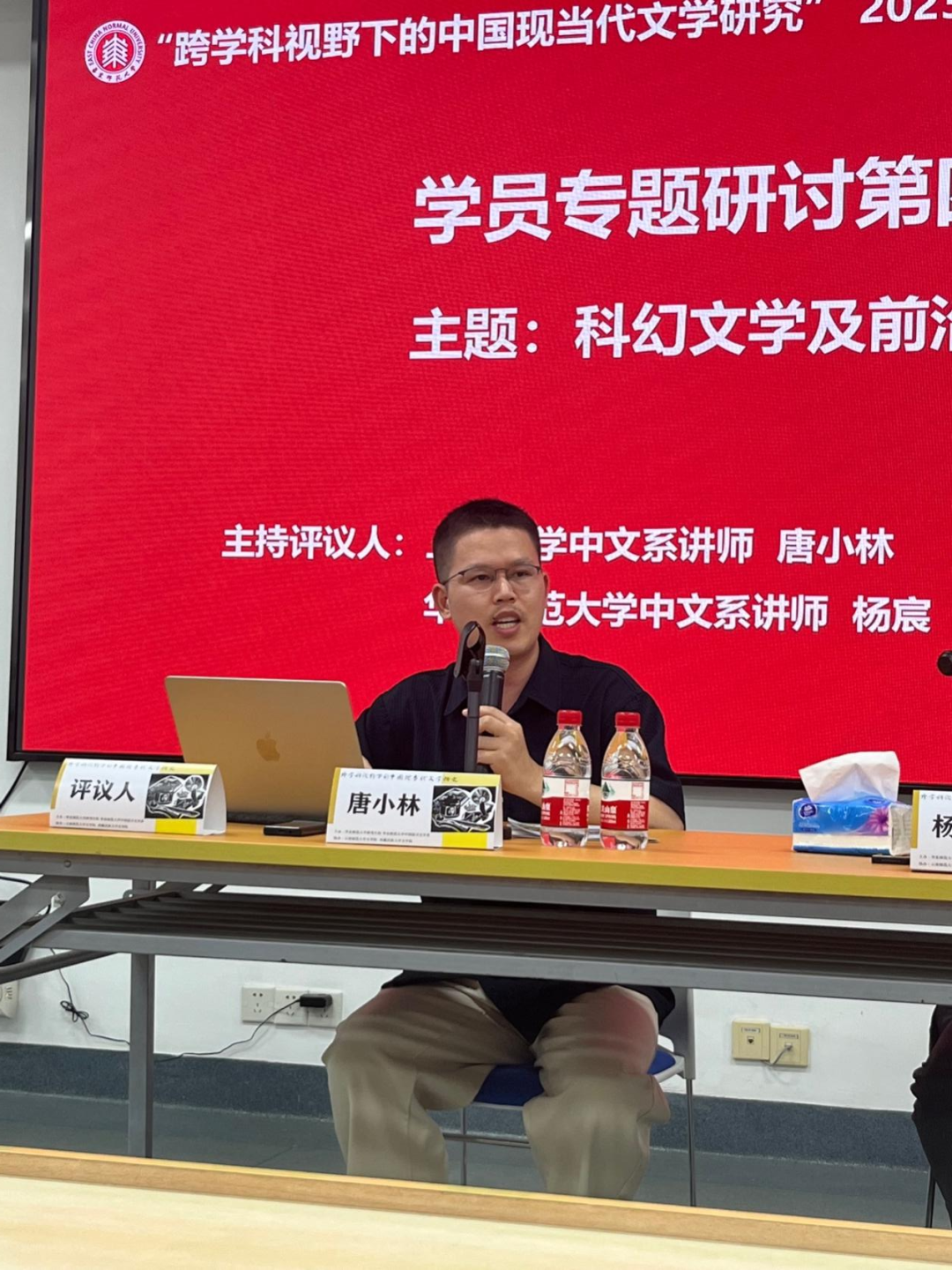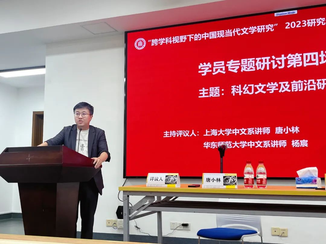 下午15:45,学员专题研讨第四场“科幻文学及前沿研究”正式开始,研讨由上海大学600cc全讯白菜网唐小林老师、600cc全讯白菜网杨宸老师担任主持评议人,来自复旦大学、重庆大学、华中师范大学、南京师范大学、西北师范大学的五位研究生依次进行了汇报。