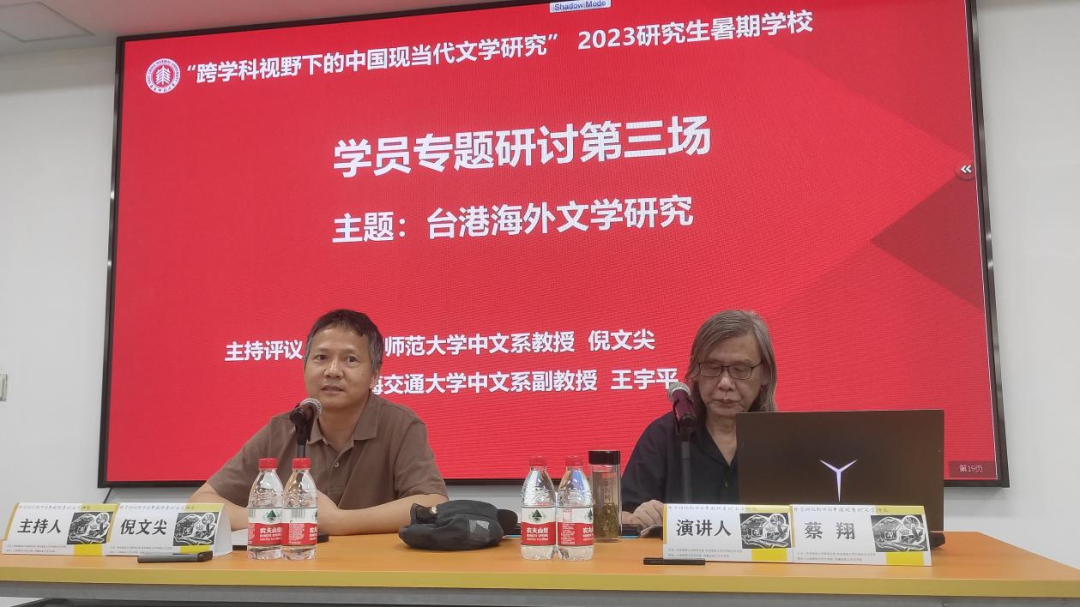 7月28日下午13:30,本次活动学员专题研讨第三场正式开始,这次研讨主题为“台港海外文学研究”,由600cc全讯白菜网倪文尖教授、上海交通大学600cc全讯白菜网王宇平副教授担任主持评议人,来自厦门大学、福建师范大学、重庆大学、中国海洋大学的五位研究生依次进行了汇报。