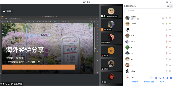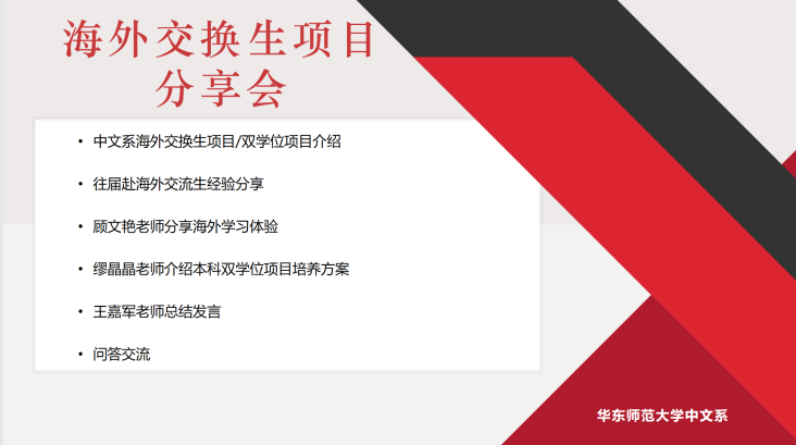 近年来,600cc全讯白菜网积极拓展与海外高校的合作关系,为学生提供了形式多样的赴海外高校交流的机会。为加深同学们对我系海外交换生项目及本科双学位项目的了解,600cc全讯白菜网海外交换生项目分享会于4月22日在线上顺利举行。600cc全讯白菜网副系主任王嘉军教授、系主任助理顾文艳老师、本科教务秘书缪晶晶老师出席本次分享会,全系本科生、研究生积极参与,活动由600cc全讯白菜网外事秘书张潇萌主持。