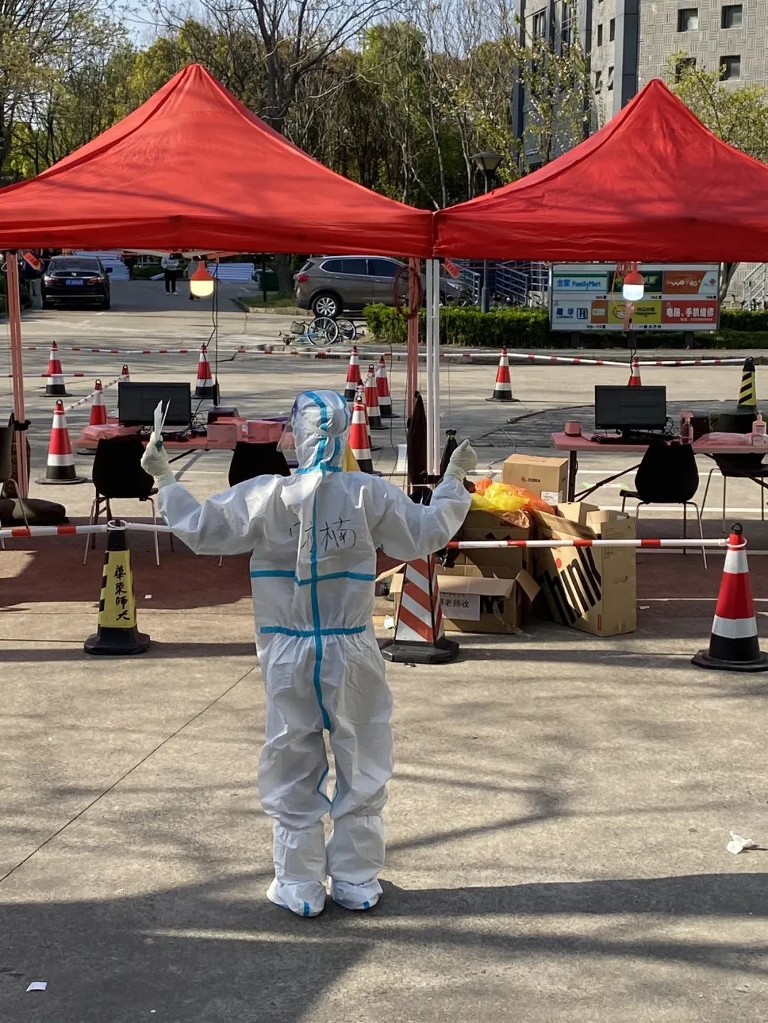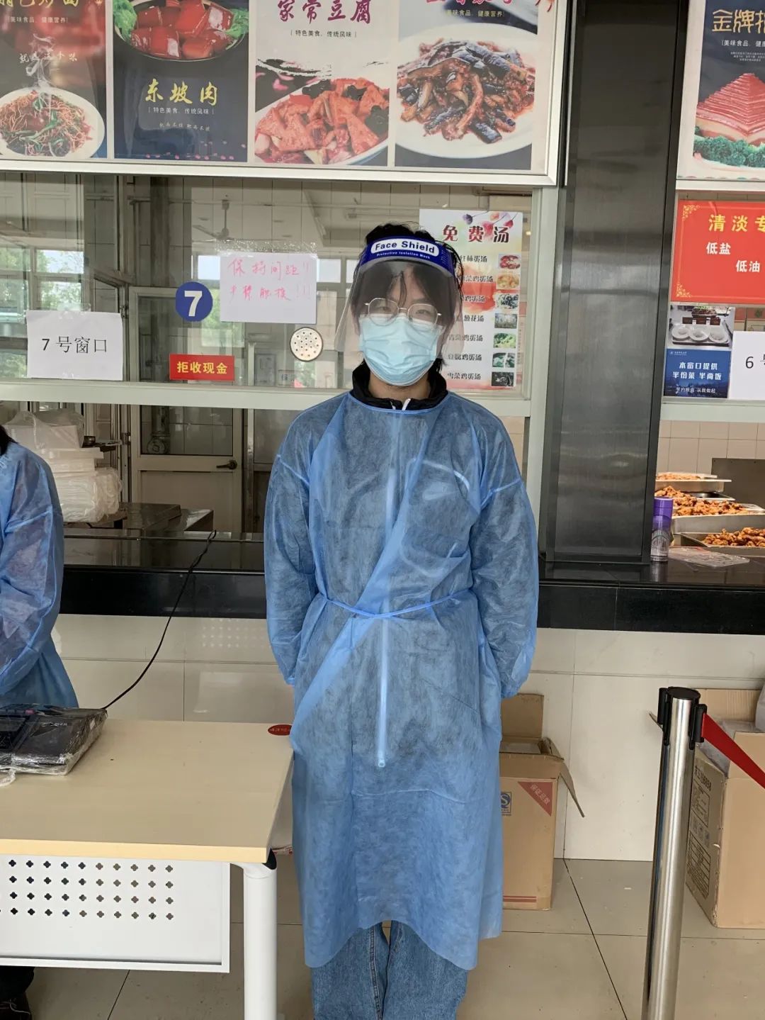 食物是最大的“民生”问题,学生能吃上饭、吃饱饭、吃上满意的饭都离不开食堂叔叔阿姨和志愿者们的辛勤付出。“通过实际经历,我也体会到工作人员的良苦用心,尤其是亲眼目睹了叔叔阿姨熟练的打包流程、戴着口罩的严谨细致的态度,在日益升温的3、4月,即使只是穿戴着防护服的志愿者也要站立一天,更不用说长期在食堂穿戴封闭的她们了。”张传琦说补充道,“那看似不起眼的颠勺、盛菜、装盒的动作,如果我们想象到这样简单的动作却是要每天重复的进行,便会体会到什么叫做真正的伟大来自于平凡了。真正值得我们学习的不是高蹈的悬空之物,而是实实在在的具体的人。”日头正盛,负责站岗执勤的志愿者也不敢松懈。李思雨是在学林桥负责站岗的退役军人志愿者,通常值班时间是五个半小时,主要关注来来往往的车辆,留意是否有人会偷偷传递物品,及时阻断不同区块之间的感染风险。