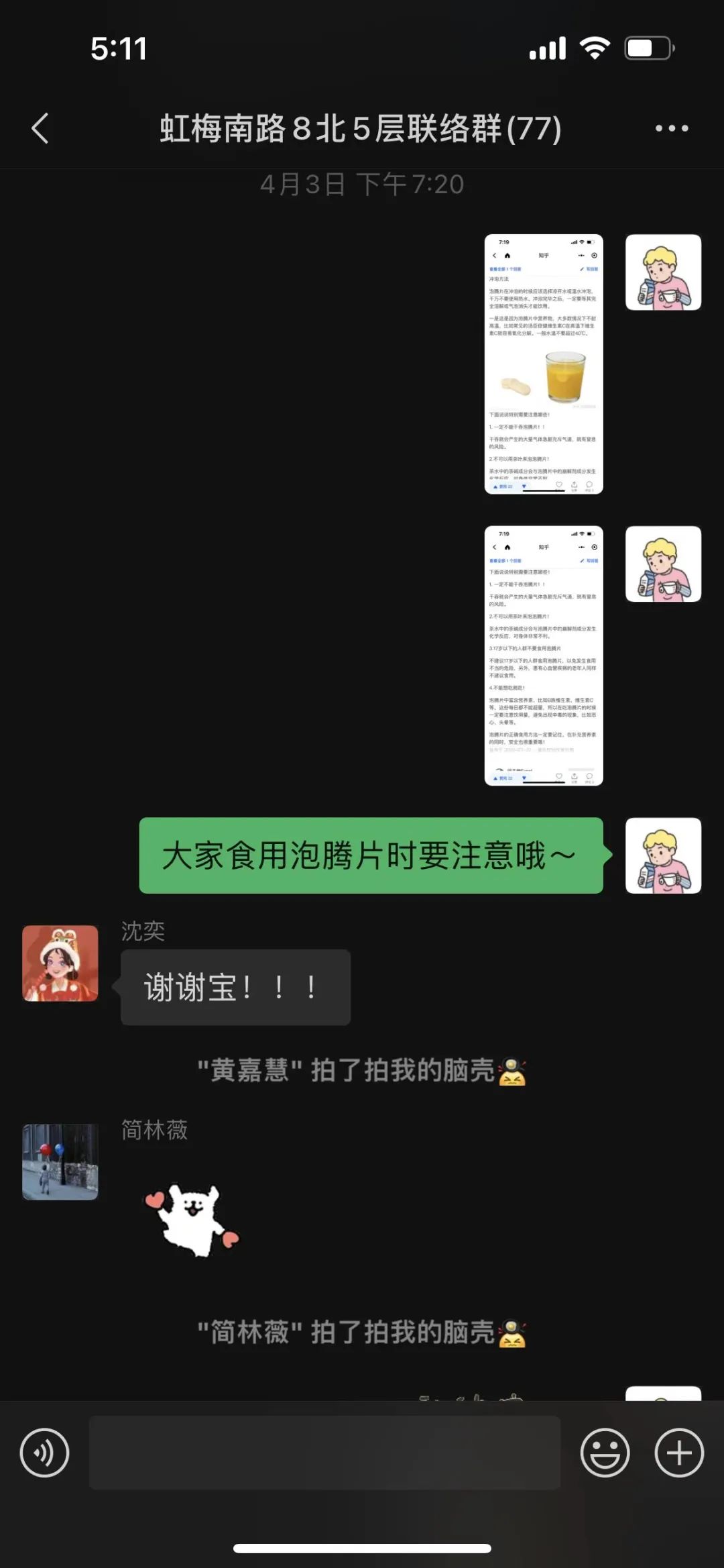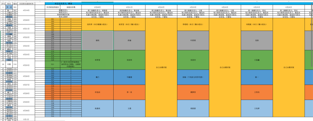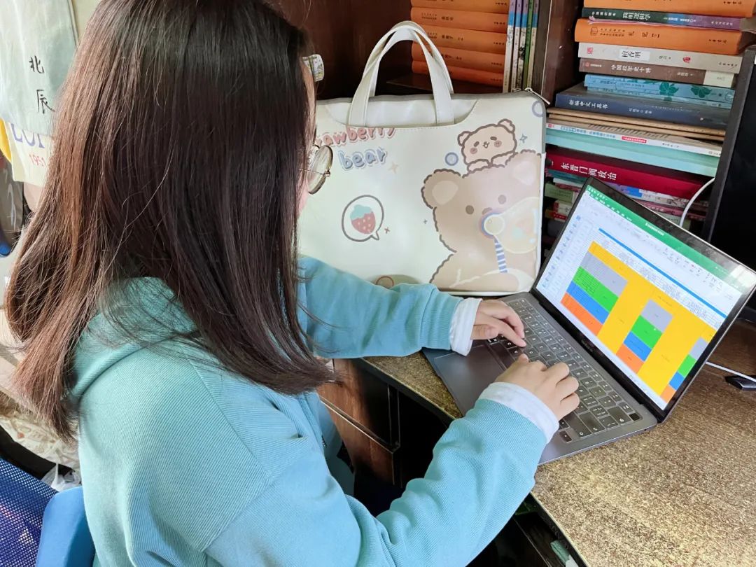 每天晚上就是郦寅更新第二天本层志愿者表格的时候,认真艾特好每一位相关负责同学,告知大家工作细节和需要注意的内容,郦寅总说:“志愿者们总是非常认真积极配合我,每天高效完成每一件志愿工作,向我们层所有志愿者致敬!”除了做好日常志愿服务,不断优化每日工作细节外,对同学们的心理疏导工作,也让郦寅印象深刻。她们层有同学出现连续整晚都睡不好的情况,通过第一时间的沟通,她了解清楚了因其他寝室深夜噪音的客观原因和疫情期间长期呆在室内造成心理压力的主观原因,在通过充分的沟通和协调后,解决了外部客观问题,也用积极心理学的方式舒缓了同学们的心理压力。在帮助大家买药登记时,会涉及到非常多信息,需要仔细核对,一一导入,郦寅说想以最温柔的方式和生病买药的同学对话,祝福每位同学早日康复,希望每个人都能被温柔以待,共过疫情难关。担任层长和辅导员助理以来,郦寅觉得身体最直观的感受其实是缺睡眠:“由于每天疫情情况不一,通知最早有六七点,最晚是凌晨一两点,并且很多通知非常紧急,需要马上向本层同学传达,因此,这一个多月来告别了平时睡午觉的习惯,一方面没有时间,另一方面害怕自己睡午觉的时候错过关键性信息而耽误整层的核酸检测或是别的事情,也担心错过同学们填写药物清单的最佳时间,毕竟越早填写,同学们越早拿到药嘛!另外,因为被拉进了各种各样的工作群,所以锻炼了及时处理各类群中的工作内容,提高工作效率的能力。”郦寅说她每天过得非常充实,因为能用实际行动组织好本层同学,努力解决大家的各类困难,并为抗疫做出微薄的贡献,这些都是成就感满满的事情。23:00-1:00