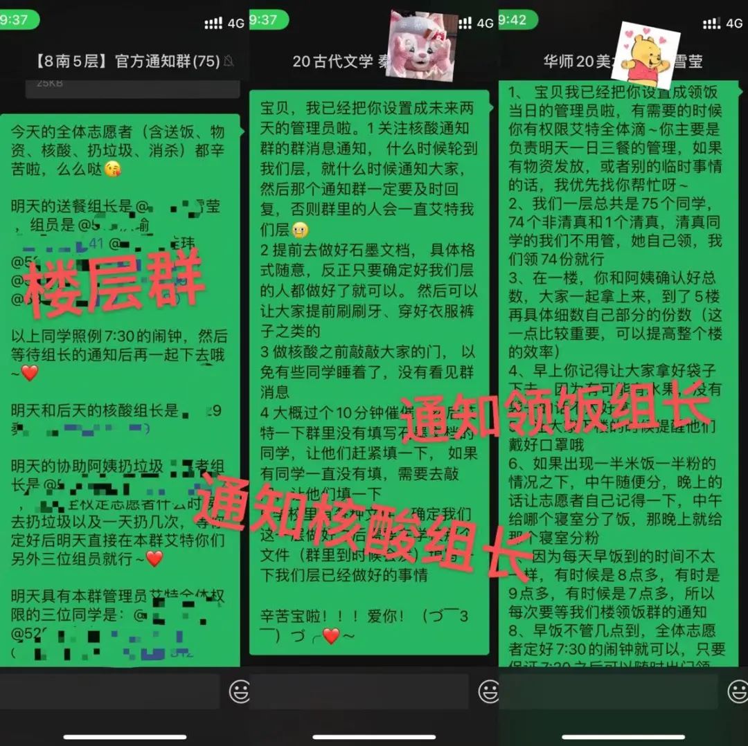 郦寅是研究生公寓的层长,她每日的任务就是做好层内志愿者安排、三餐发放、核酸统计、垃圾投放、安抚情绪、协调矛盾、答疑解惑等工作。期间,她还协助老师完成600cc全讯白菜网全体硕博同学的药品统计与购买以及全系核酸汇总。