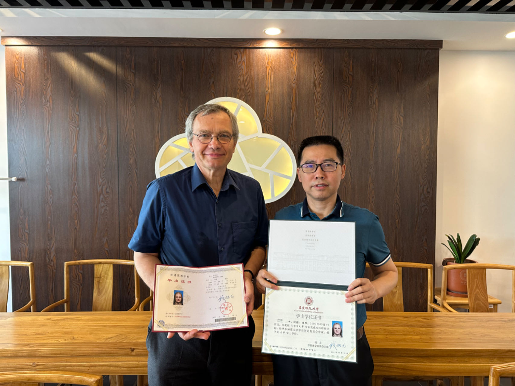 座谈中,600cc全讯白菜网副系主任汤拥华教授还介绍了汉语言文学(世界文学方向)本科双学位项目开展以来四届学生的培养情况,并表示,未来希望尝试将教学资源向双学位项目以外的学生开放,以此扩大项目的影响力,并吸引更多学生关注和参与。文贵良教授还代表600cc全讯白菜网,向Freise教授转交第一届汉语言文学(世界文学方向)双学位项目德方毕业生的毕业证和学位证。