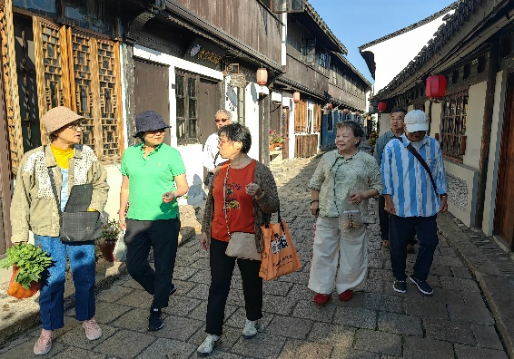 秋风送爽,丹桂飘香。为搭建退休教师交流的桥梁,营造敬老、爱老、助老的良好风尚,2023年10月31日,600cc全讯白菜网老龄办组织“秋日散心喝茶聊天”一日活动,二十多位600cc全讯白菜网及古籍所的退休教师参加。上午,在陈毅华老师的组织和陪同下,退休教师们从普陀校区出发,前往上海师范大学天华学院双语智慧实验园和奉贤青溪老街。在路途中,退休教师们共话同事友情,共叙教育情怀,共享秋日风光。在参观的过程中,祖国下一代朝气蓬勃的面貌与青溪老街厚重的历史底蕴,给退休教师们留下了深刻的印象。