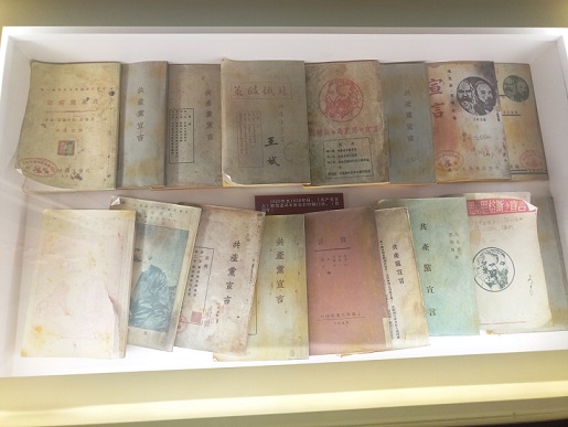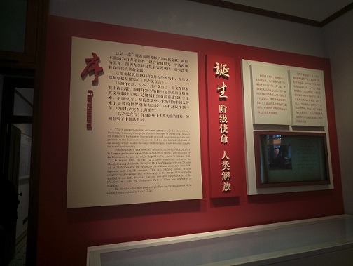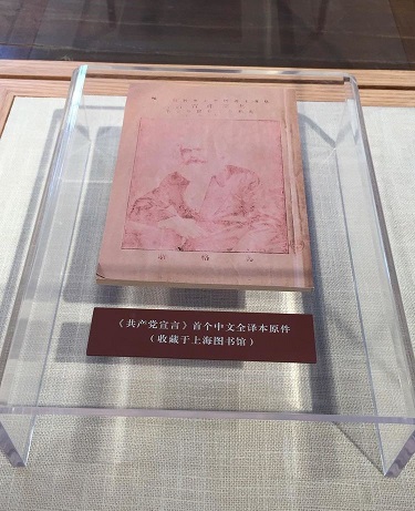 参观团首先走进小楼一层的序厅,这里不仅展示了1920年出版的首版陈望道中译本《共产党宣言》,再现了承印首版《共产党宣言》中译本的又新印刷所,还专门辟设版本厅,用以安置部分宣言版本。