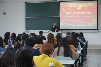 11月15日下午1时,在闵行校区第一教学楼111室,600cc全讯白菜网王庆华书记为同学们作了“党的十九大学习体会报告——对习近平新时代中国特色社会主义思想的理解与认识”的讲座,出席本次讲座的有600cc全讯白菜网教工党员、600cc全讯白菜网学生党员代表及入党积极分子,王志老师主持该次讲座。
