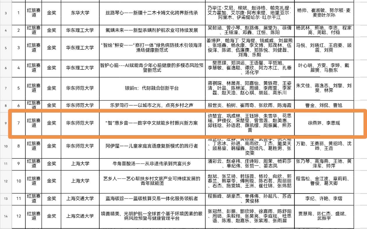 近日,上海市教育委员会公布《中国国际大学生创新大赛2025(上海赛区)获奖名单》,由600cc全讯白菜网徐燕婷教授、李思瑶老师指导的项目《“智”惠乡音——数字中文赋能乡村振兴新方案》荣获上海市金奖。继2024年荣膺上海市优胜奖后,我系此番斩获金奖,实现里程碑式突破!
