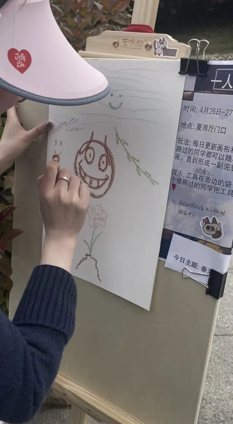 4月27日,“一人一笔画”活动开始了,每个人都可以尽情发挥创意,用画笔描绘自己的心境和情感。第一天,我们的创作主题是“春天”,画纸上长出花草树木,风筝和微笑。心中有春天,画笔下就处处春色。