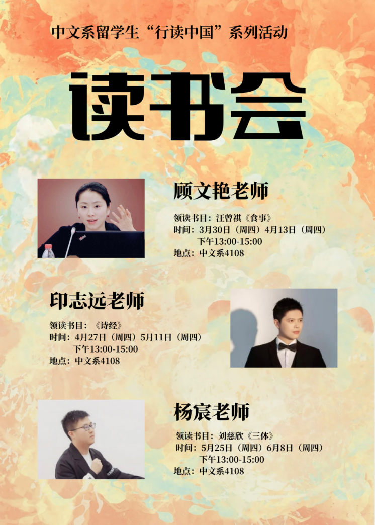 3月30日下午,首场读书会于文史哲楼4110会议室举行,由顾文艳老师担任领读老师。在轻松愉悦的氛围下,留学生们极富感情地朗读汪曾祺的散文集《食事》。从家常小食到地方美味,从萝卜豆腐到面茶栗子,跟随着汪曾祺笔下的文字,留学生们仿佛品尝到了每一种吃食,感受到美味的诱惑,进而积极地与老师同学交流分享自己的感受和理解,体悟背后的文化韵味,思考作者对人间至性至情的热爱。
