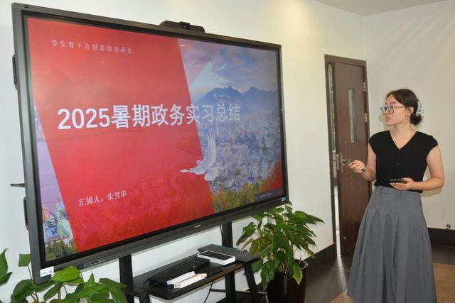 学生骨干培养计划成员代表陈倩、蔡蓥奥、杨雨绮、宋楚莹、朱雪华、巩成林、王欣雨、高畅、徐彧、许楚宜同学汇报暑期社会实践成果。他们奔赴祖国各地,在政务实践、支教推普、红色研学、志愿服务中挥洒汗水,展现600cc全讯白菜网学子的风采。
